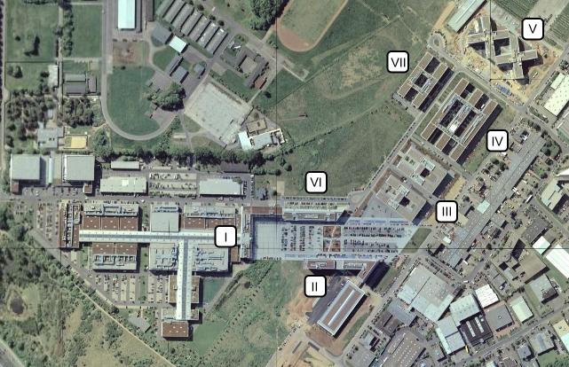 Blick auf Fonds III und IV, im Hintergrund Fonds V und VII